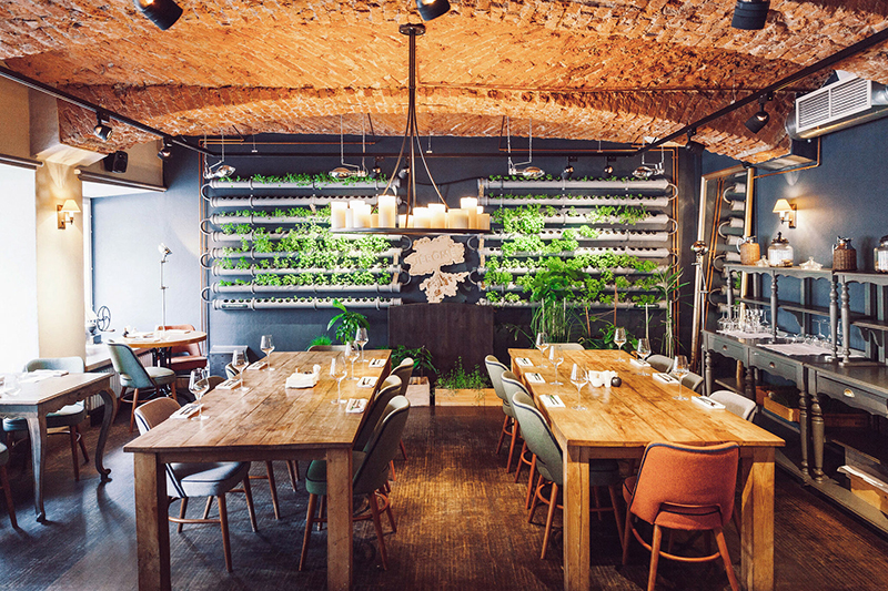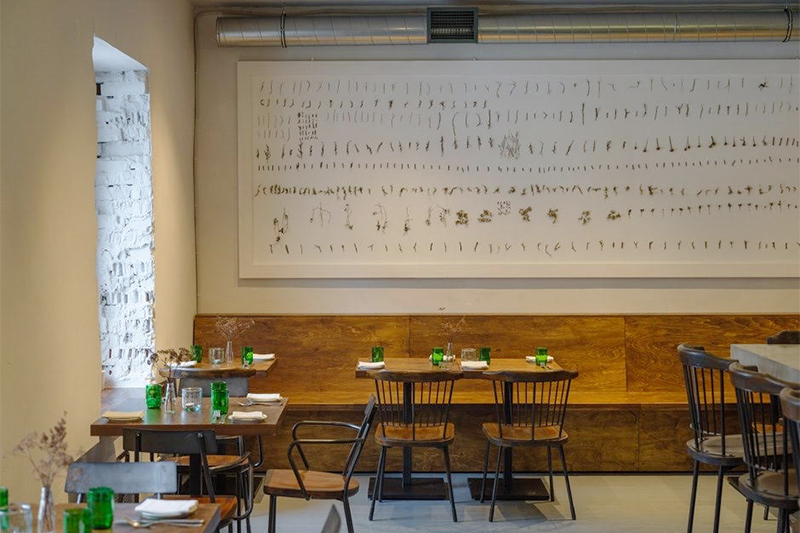 Точка притяжения всех модных травоядных на «Севкабеле»: большие окна, обилие зелени в меню и интерьере, винтажная финская мебель. Готовит на кухне Виктория Мосина, убежденный шеф-веган, которая начинала свою карьеру у Игоря Гришечкина в «Кококо». Вика изучает грибы и дикорастущие травы, проводит экскурсии в лес для заинтересованных. Попробовать необычные вкусовые сочетания можно на регулярных званых ужинах, их анонсируют в инстаграм-аккаунте ресторана. Основной акцент в меню на боулах, их пять разных видов: на выбор с кабачками, полбой, перловкой, киноа или запеченным бататом. Но также подают сезонные супы и горячее: спагетти из кукурузы с лисичками и молодым сыром из кешью, капуста из соуса сладкого перца с кунжутом, бламанже из кедра, голубики и карамели из сосны. В.К.