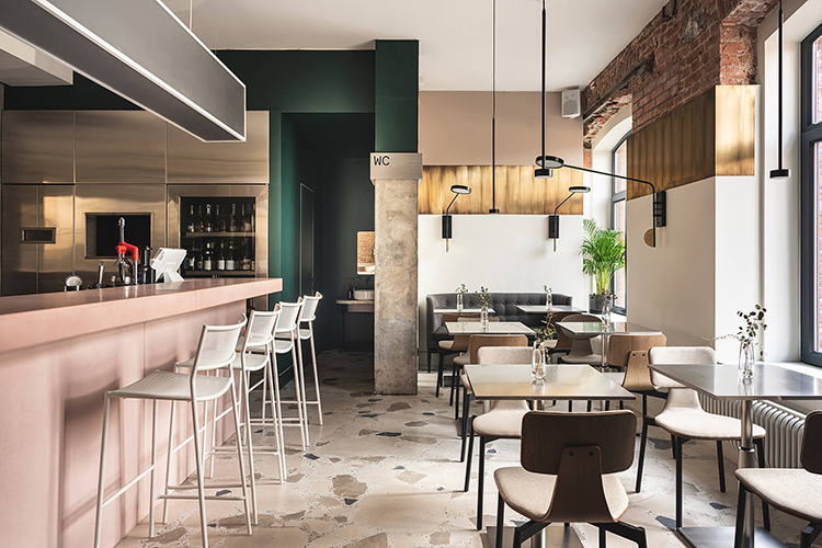 «Форма определяется функцией» — это точно про «Футуру»: до предела функциональное бистро с минимальным не имеющим бытового предназначения декором, больше половины площади — открытая кухня (есть даже окно в цех, где замешивают тесто и выпекают хлеб), а барная зона не предусматривает ненужную стену между бариста и гостем.