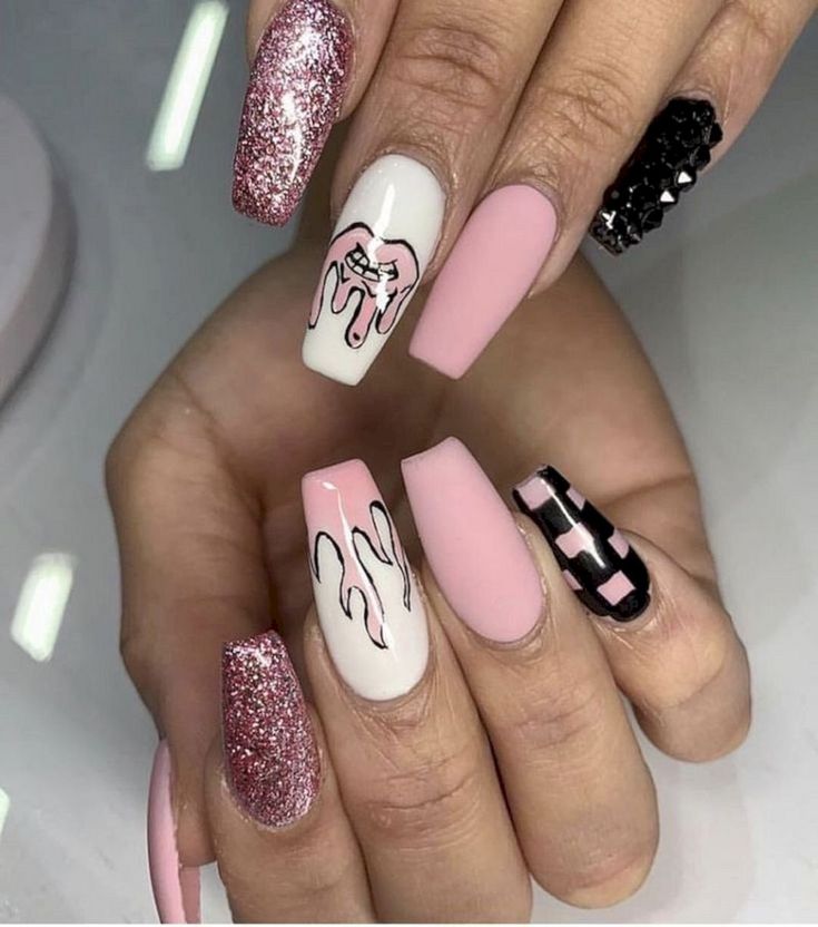 Любой, кто не может определиться с одним видом своих ногтей, должен выбрать несоответствующую эстетику. Помимо черного и белого, вы можете выбрать другой цвет и рисунок для каждого ногтя.