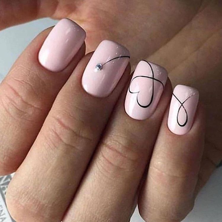 Подготовьте ногти к вечернему свиданию, нарисовав на них романтические сердечки. Эти милые короткие квадратные ногти — идеальный холст для крошечных каракулей.