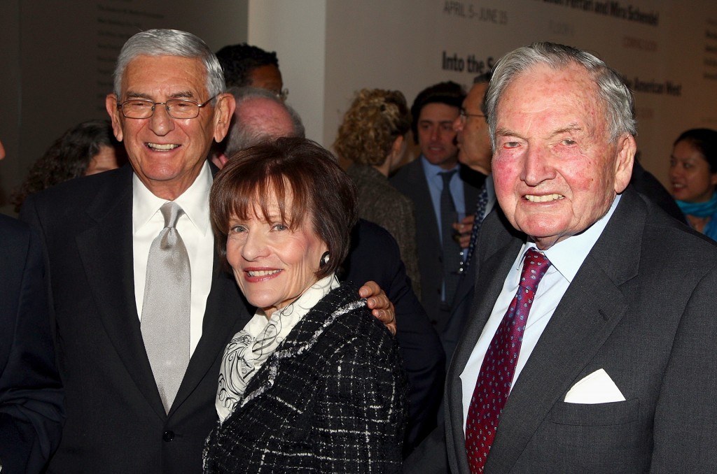 Дэвид Рокфеллер — американский банкир, государственный деятель, глава дома Рокфеллеров (2004—2017), внук первого в истории долларового миллиардера Джона Рокфеллера. Младший брат 41-го вице-президента США Нельсона Рокфеллера.