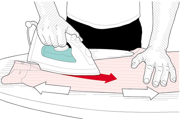 Так же отглаживают и лицевую сторону. Гладить нужно без нажима, чтобы ткань не сдвигалась по сторонам, образовывая складки.