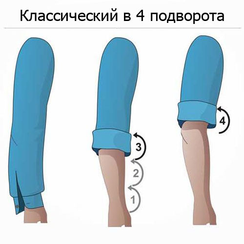 Классический способ используется для подката рукава до разной длины. Следует знать, что: