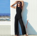 Стильный летний комбинезон черного цвета, с круглым вырезом и без рукавов из коллекции сезона весна-лето 2014 от модного дома L.A.M.B. прекрасно будет сочетаться с низкими сандалиями гладиаторы черного тона на плоской подошве от L.A.M.B.