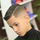 Уникальность прически в том, что на темени расположена основная часть волос, а виски и затылок более укорочены. Опытные профессионалы делают этот переход, максимально плавным. Мальчики с такой прической будут выглядеть по-взрослому элегантно.