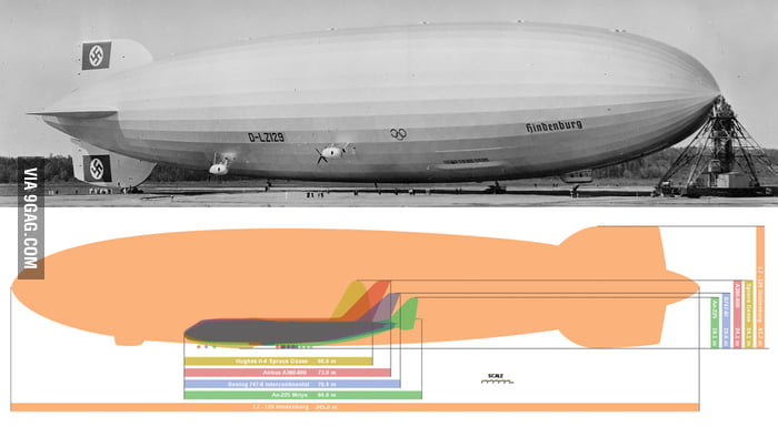 Самый большой дирижабль, когда-либо созданный как по длине, так и по объему, Hindenburg 9.