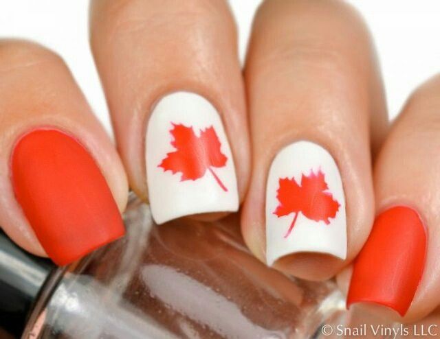 Если вы хотите осенью выглядеть на все 100%, выбирайте красивый нейл-арт с кленовыми листьями.