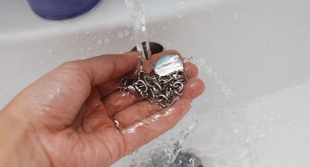 - Смойте остатки средства водой и просушите серебро.