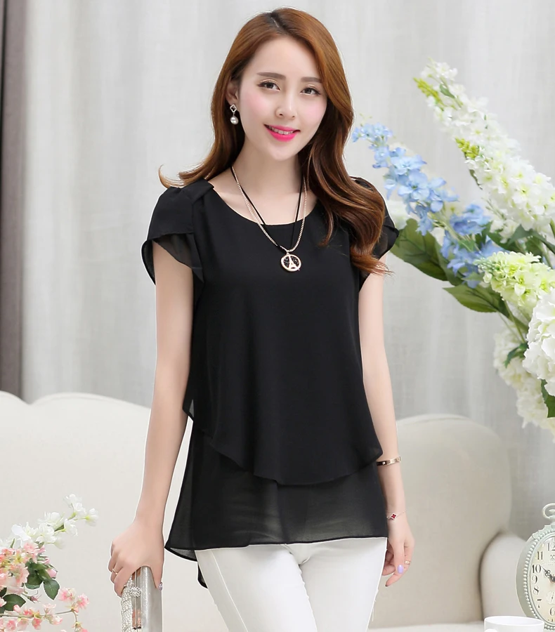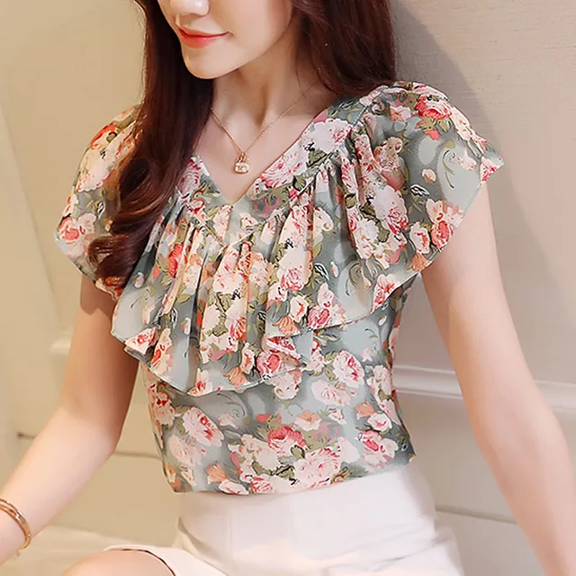 Модные блузки из шифона 2022 с короткими рукавами