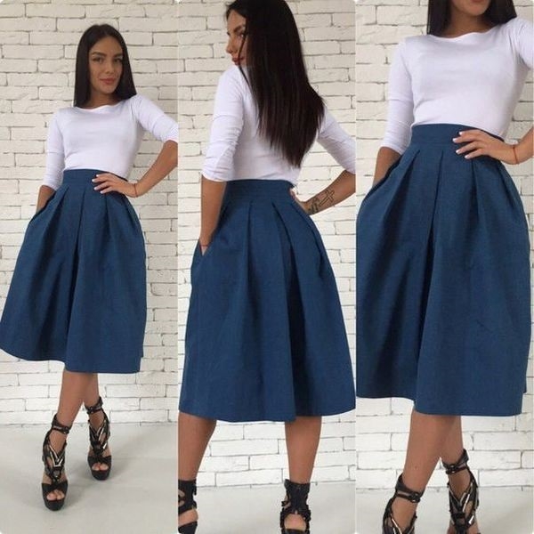 И еще один совет: юбки фасона «солнце» или «полусолнце» можно носить не только в выходные дни, на свидания или летом. Они уместны зимой и в офис. Все зависит от цвета и ткани изделия: летом юбка должна быть сочной и легкой, в холодное время — из плотного материала и темных оттенков; в офис выбирайте более скромные вещи, на выход — яркие.
