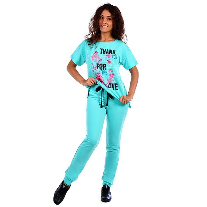 Костюм спортивный для девочки базовый трёхнитка туника оверсайз и брюки лосины мята