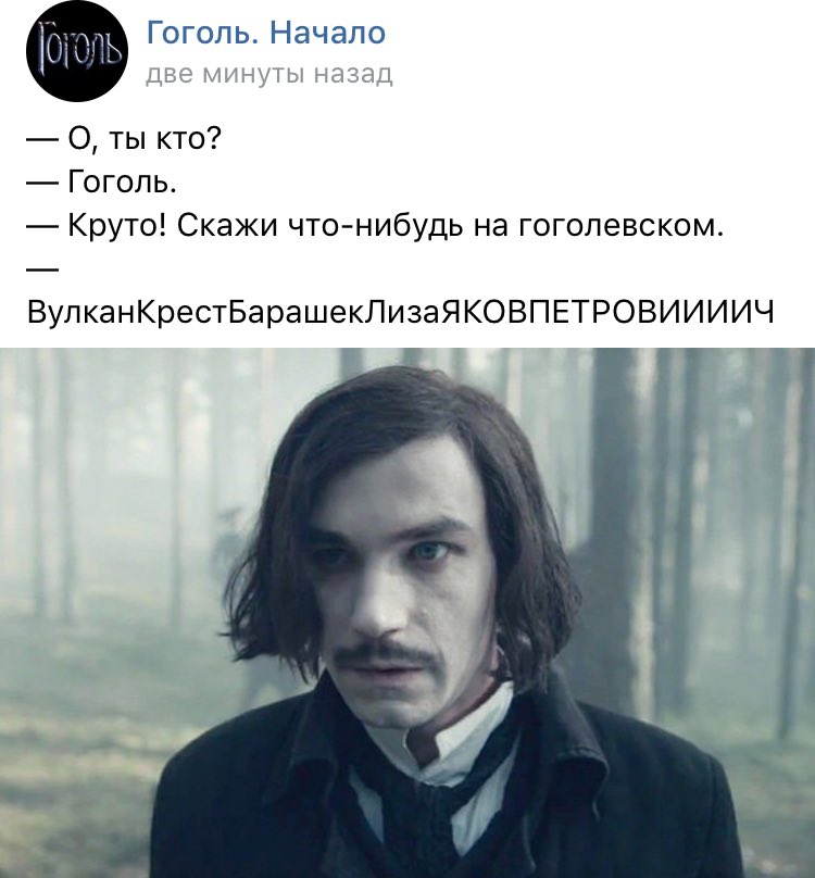 Все равно это наша основная цель рассказать миф о писателе, о том, как Гоголь им становится, и в том числе о его даре. Этого, как я слышал, не хватало в фильме «Гоголь. Начало». Так как история долгая, сложно все выдать сразу.