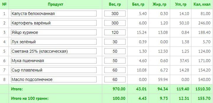 Калорийность оладьи жареные. Химический состав и пищевая ценность.