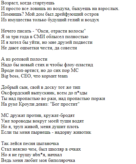 Это была первая за долгое время песня, где куплет Мирона длился больше минуты.