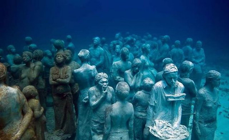 Посреди Карибского моря, в городе Канкун, расположился необычный музей, экспонаты которого полностью поглощены морской водой. Этот огромный подводный музей насчитывает около 400 скульптур. Его фигуры расположены на глубине примерно 10 метров. Музей относительно молодой, он был открыт в 2009 г. с целью отвлечения миллионов туристов от коралловых рифов, которые являются достопримечательностью туристического города Канкун в Мексике.