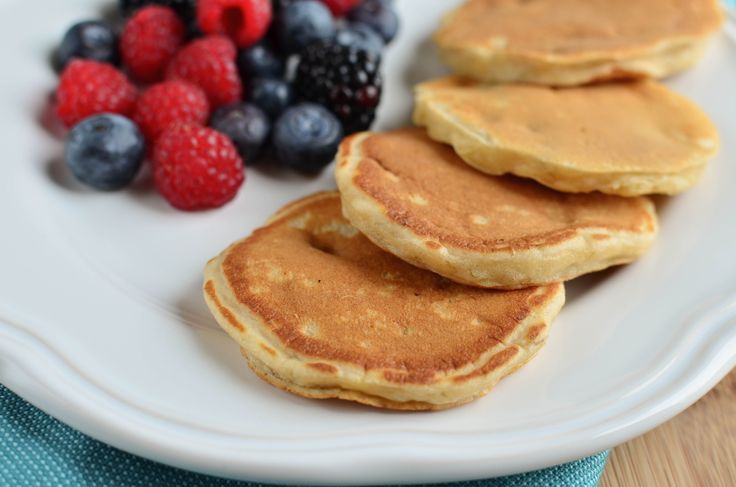 Молочные оладушки выкладываем горкой и украшаем свежими/замороженными фруктами. Также можно полить густой сметаной, фруктовым йогуртом, ряженкой, вареньем или джемом.