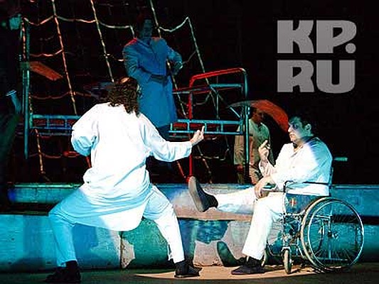 Сестра моя — жизнь» заглавный герой разделился на три ипостаси (юноша, старик и ребенок): один артист ответил на поэтическое чириканье, другой — на пение, третий — на пластику. . Тот же прием — назову его «тройственный подход» — Диденко применяет в новой работе над текстом Виктора Пелевина: первое действие — музыкальный концерт на стихи из романа, второе — драматическая сцена, третье — танец. .