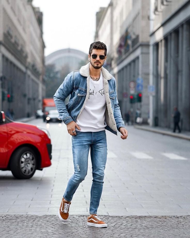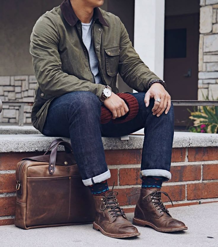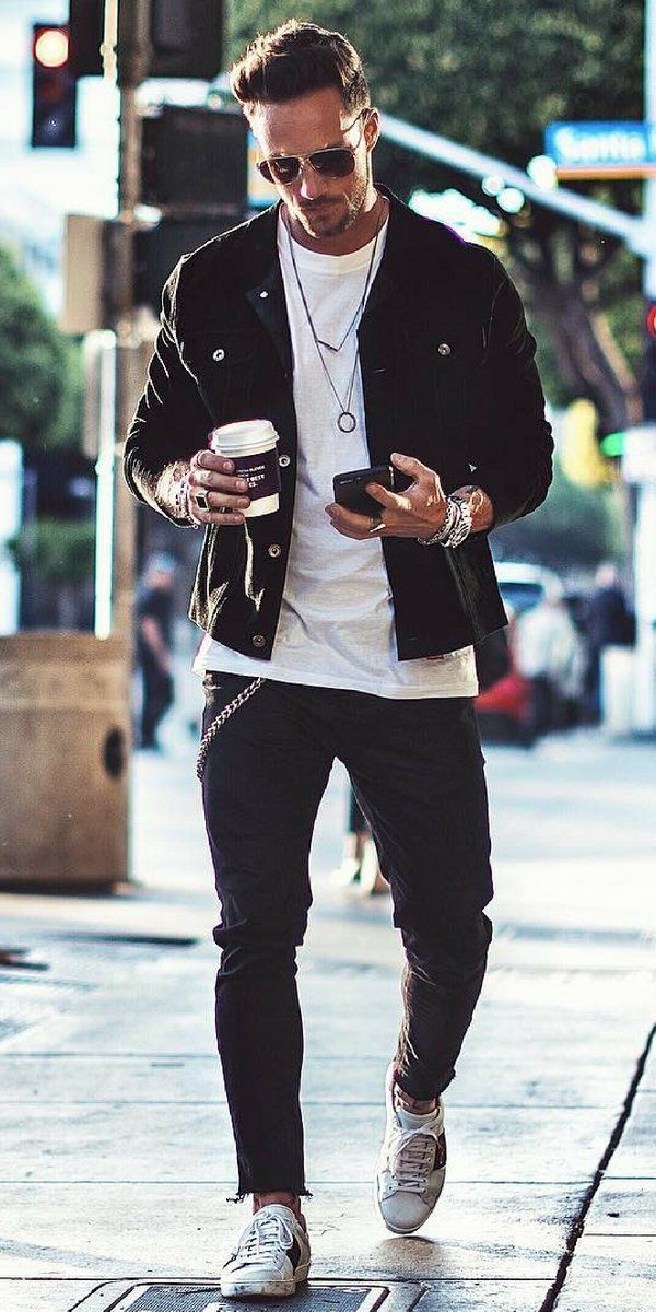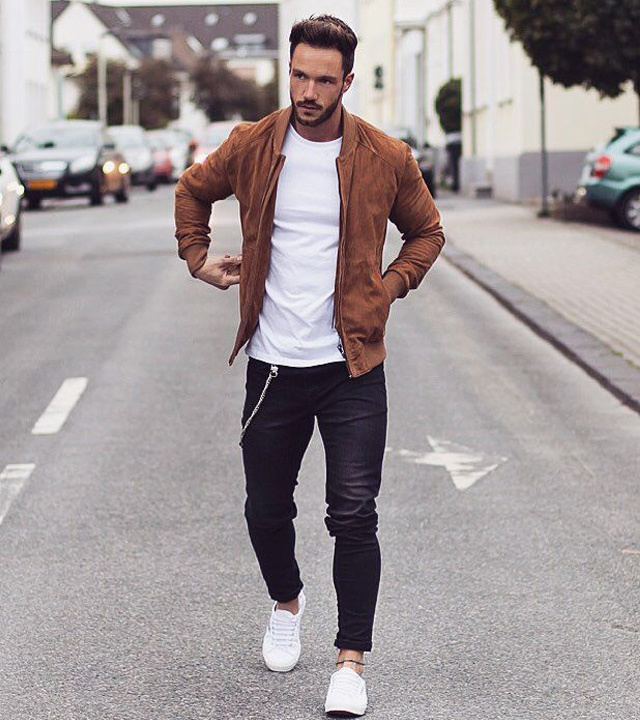 Одевайте их вместе с джинсами, футболкой и мужской кожаной сумкой.