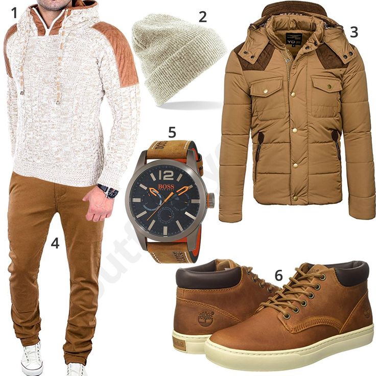 Вязание (например, пуловер, кардиган или полумолния) + рубашка на пуговицах + любые брюки