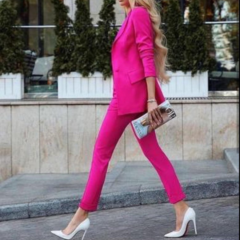 А под штанами – рраз, и каблучки — цок-цок. И туфли какие-нибудь яркие — розовые, желтые или вообще в блестках.