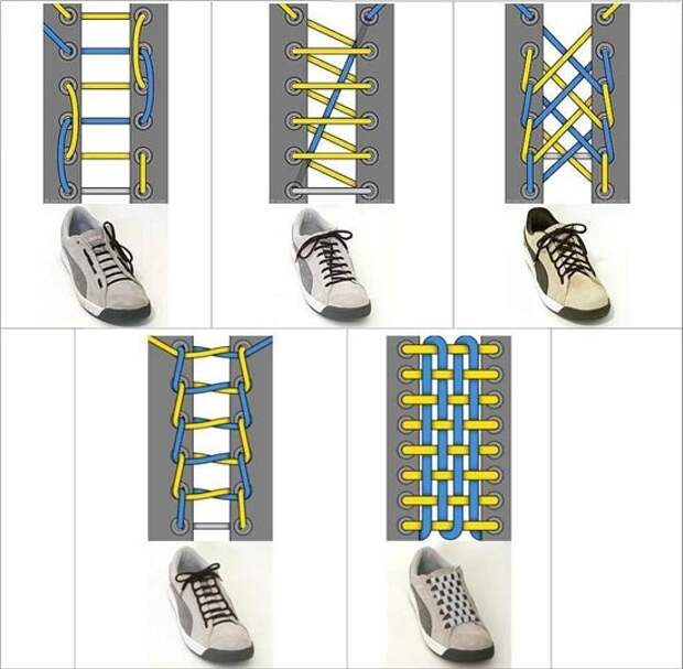 - Продолжайте шнуровать попеременно одним и вторым способом.