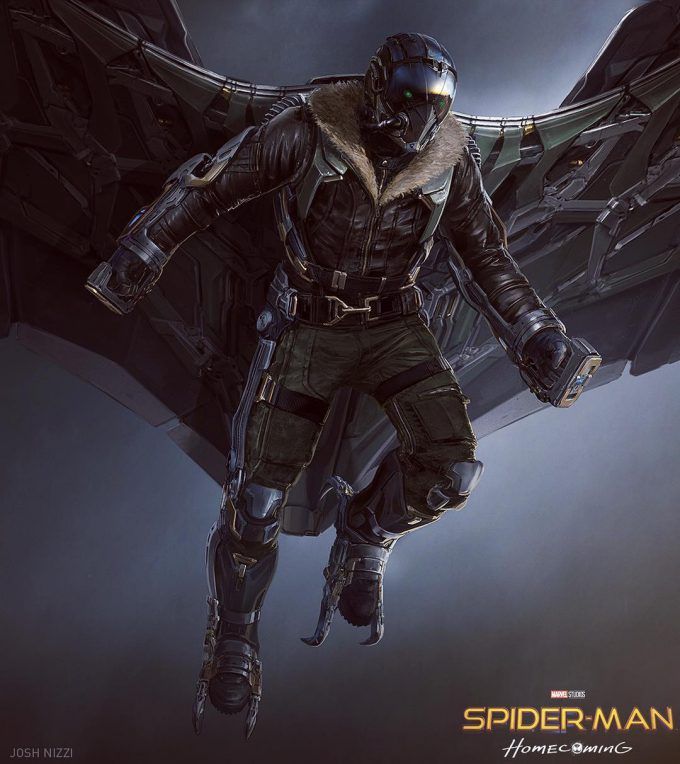 По словам сопродюсера Эирка Хаузермана Кэрролла, у этого обычного Джо «есть кость на выбор» ни с кем, кроме Тони Старка, после того, как новая правительственная организация, основанная персонажем Роберта Дауни-младшего, берет на себя его работу. Тоомс «вроде становится темным Тони Старком», с Шокером Боким Вудбайн и Тинкерером Майкла Чернуса на его стороне. Они спасают инопланетные артефакты и передовые технологии, чтобы собрать и продать невероятное оружие. Это позволяет Джону Уоттсу использовать «аккуратный мусор из всех других фильмов», давая Homecoming уникальный способ привязать себя к MCU: