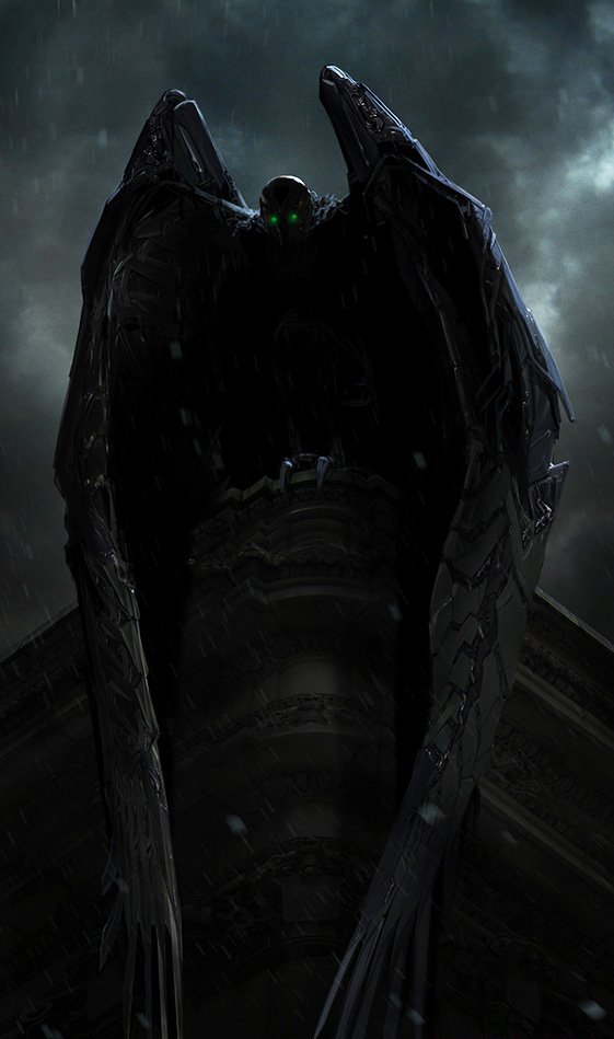 [Крылья Стервятника разрезают столбы здания, окружающие Человека-паука]