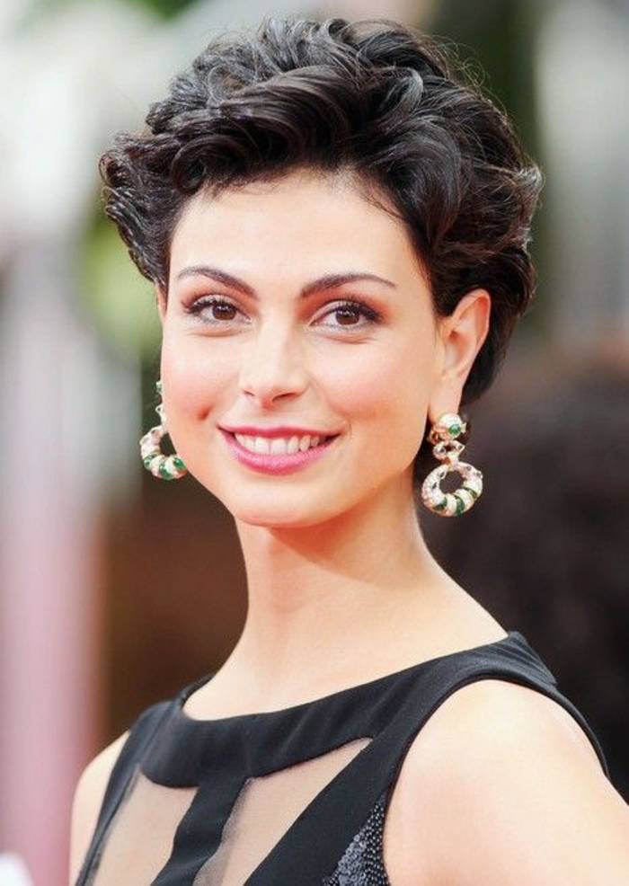 - Круглый вид облика нуждается в небольшом удлинении. Для этого может быть выбрана прическа «Пикси» с волнами.