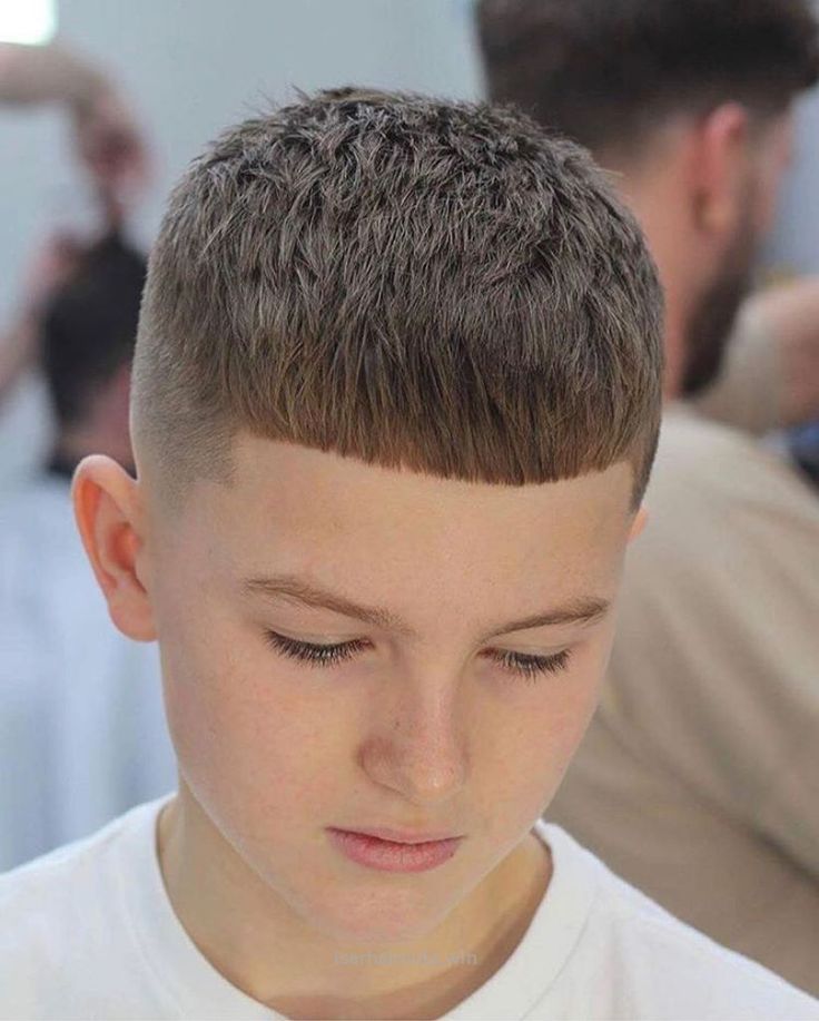 [dropcap style=»circle»]1[/dropcap]Идеальной прической для мальчиков 10 лет считается ежик. Он достаточно прост в своем исполнении и не заберет у вас много времени.