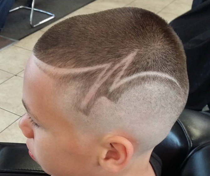 мальчиков с рисунком на выбритом затылке и висках.