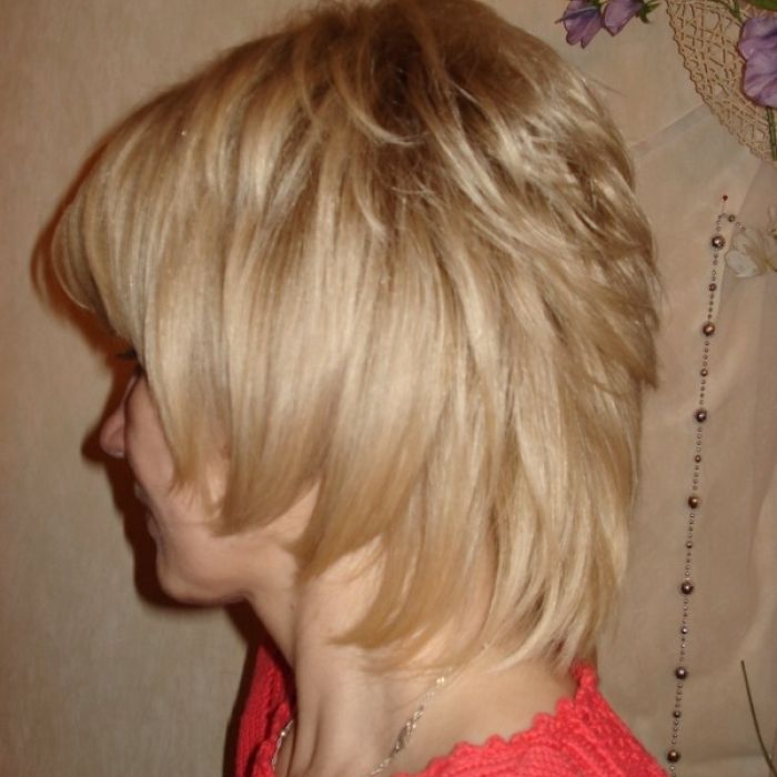 Стрижка Боб Каскад на средние волосы с короткой челкой