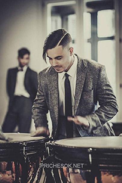Если вам нужна прическа для официального мероприятия к костюму с галстуком, позаимствуйте стиль классической мужской стрижки Тома Харди в роли одного из братьев-близнецов в фильме «Легенда». Прическа с длинными волосами верха и выбритыми участками над ушами с постепенной аккуратной тушевкой к макушке. Добавьте косой пробор и гладко зачешите пряди назад