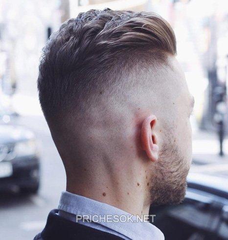 Эта позиция наиболее мужественная и выделяющаяся. По бокам и сзади волосы сняты очень коротко. Переход в длинную зону начинается выше ушей. В целом прическа кажется точной и линейной, но по-прежнему остается место для творчества. Например, вы можете сделать пробор с выбриванием или зачесать челку назад с помощью геля.