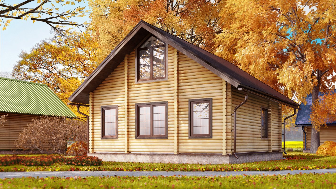 Идеальный материал для стройки осенью. Это может быть тесаный или клееный брус, бревно. Главное требование, лес должен быть сухим. Фундамент можно сваечный или ленточный.