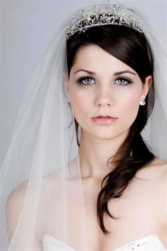 Обладательницам локонов рекомендуется выбирать изящные диадемы. В компании с таким декором (без лишних декоративных элементов и визуальной массивности) хорошо использовать многоярусную фата.