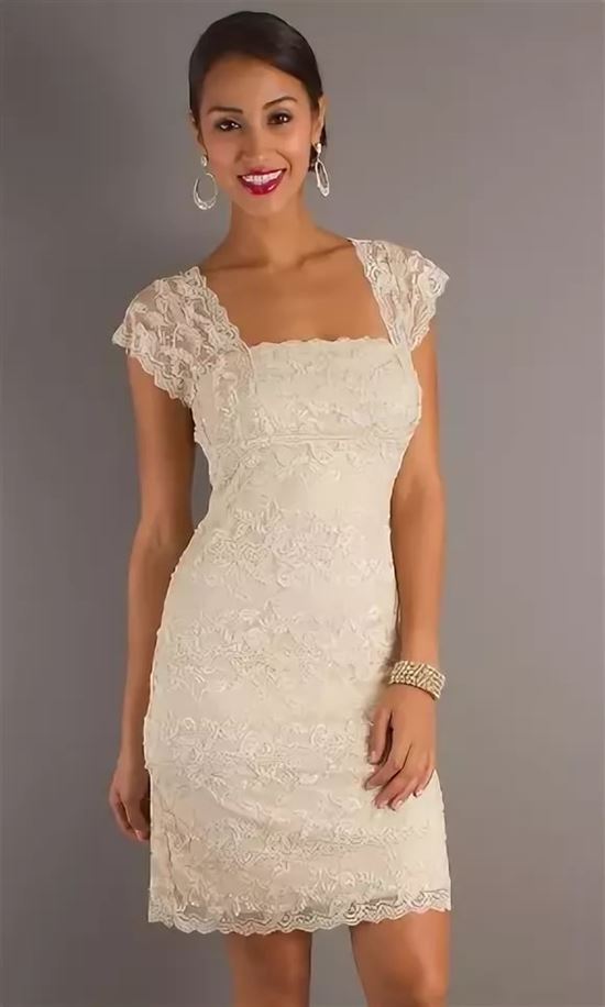 - Кружевное платье приталенного фасона или с юбкой-плиссе сделает вас нарядной, торжественной, привлекательной женщиной.