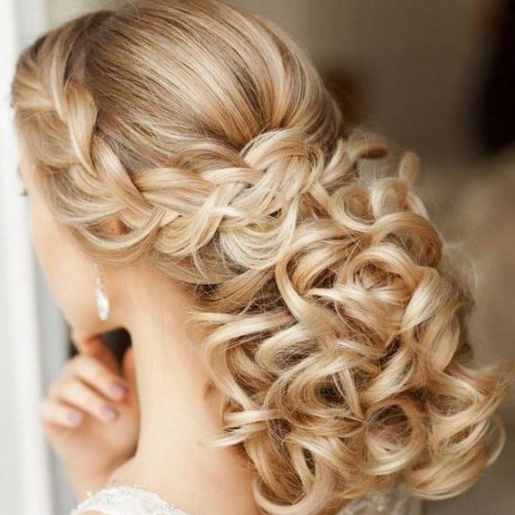 Эта прическа невесты отражает ее роскошь и элегантность. Локоны слегка подкручивают и убирают, сплетая сзади в косу. Можно даже и не переплетать волосы, поскольку шикарные локоны, собранные сзади, итак выглядят в форме пышной длинной косы. Трендовую укладку можно декорировать драгоценными камешками и живыми цветами.