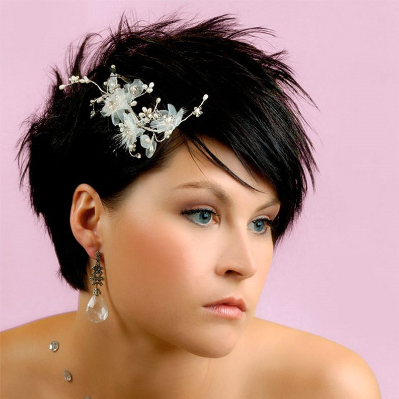 Цветочные аксессуары – самый популярный выбор для коротеньких волос.