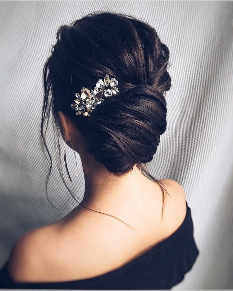Романтическая свадебная прическа «Растрепанный пучок» (свадебная прическа) Hair By Sleame75. Гладкий низкий пучок с великолепными свадебными аксессуарами для волос