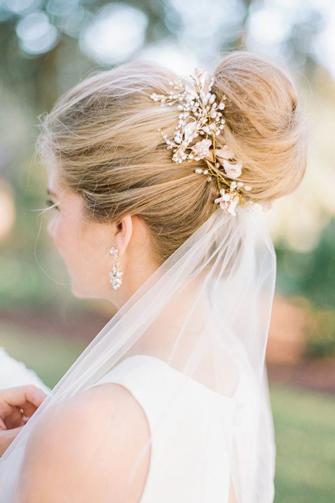 Это одни из самых популярных свадебных причесок с фатой, а поскольку шиньоны чрезвычайно универсальны — вы можете сделать их как повседневными, так и формальными, как вам нравится, — они подходят для различных свадебных сезонов.