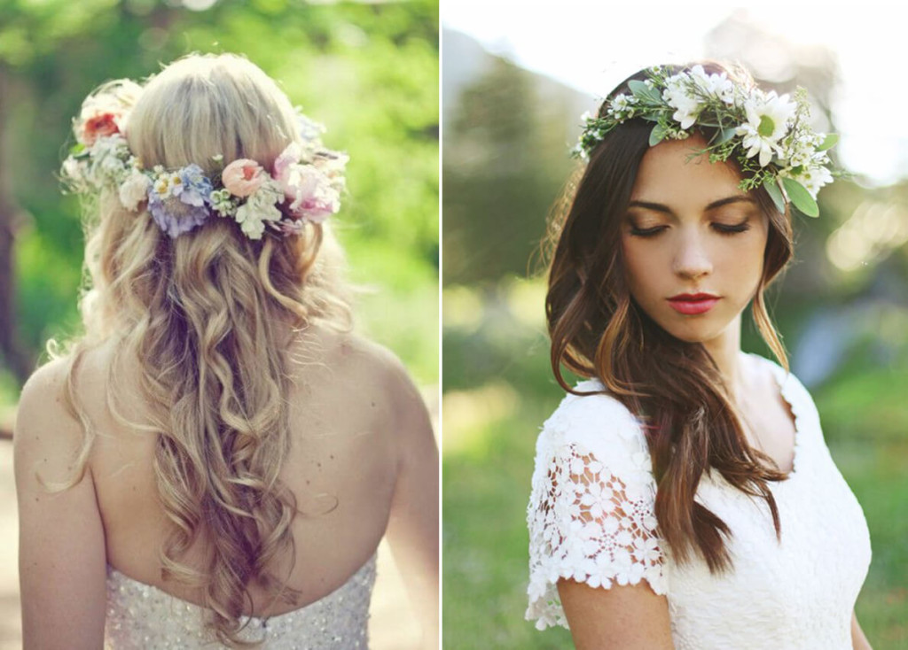 Корона из цветов — всегда свежий свадебный аксессуар.