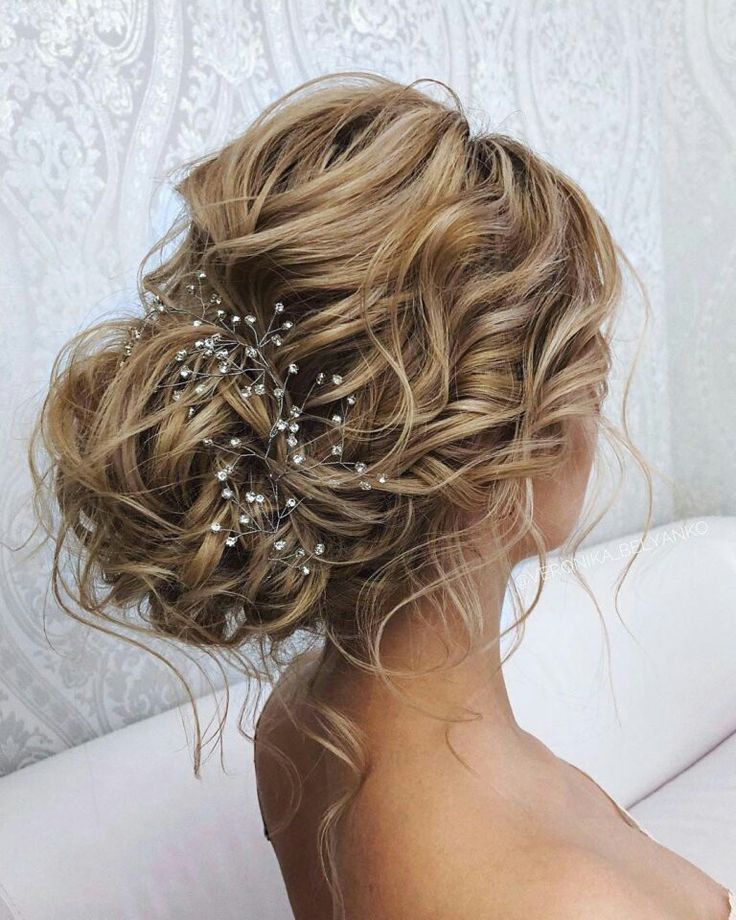 Классическая прическа с низкими вьющимися волосами — идеальный вариант для обладательниц коротких прядей. Волосы можно заколоть так, чтобы пряди свисали над ушами и щеками. Почти любой тип волос может вместить эту прическу и выглядеть потрясающе в ваш волшебный день.