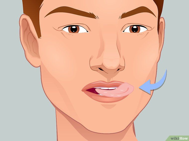 - Губу прижимают к зубам. Можно поддерживать ее пальцами, если придать требуемое положение затруднительно.