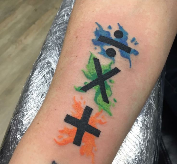 Значение: У Эда Ширана есть импульсная татуировка на левом бицепсе, которую он сделал вместе с Джовелем, чье исполнительское имя Random Impulse. Он один из старых близких друзей Эда, и они решили сделать ему подходящую татуировку. Эд также является крестным отцом дочери Джовеля.