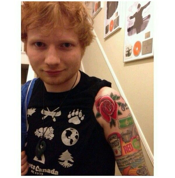 Татуировка: У Эда есть татуировка «Red» на левом плече в честь его лучшего друга Тейлора Свифта после их альбома «Red» и тура. Эд также спел с ней песню во время ее турне по Америке.