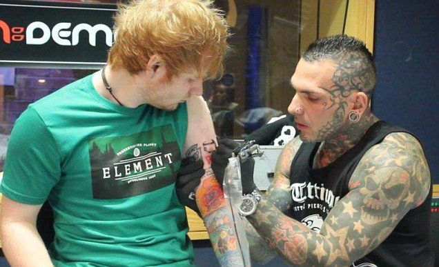Эти чернила являются точным изображением автографа его любимого певца на его теле. Дэмиен Райс — музыкальный кумир Эда Ширана.