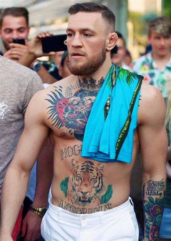 Тату-салон на Венис-Бич опубликовал несколько фотографий дублинца, демонстрирующего свою новую татуировку. У МакГрегора на животе навсегда остался шрам в виде большой цветной фигуры тигра.