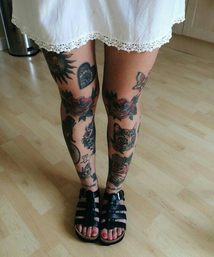 Дело в том, что нога состоит в основном из мышц, а кости и сухожилия скрыты глубоко под ними, поэтому боль чувствуется гораздо меньше; - женские тату на ногах способны замаскировать несовершенства фигуры, либо же наоборот, подчеркнуть достоинства и внести в образ сексуальность;