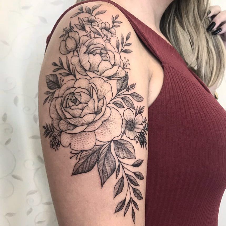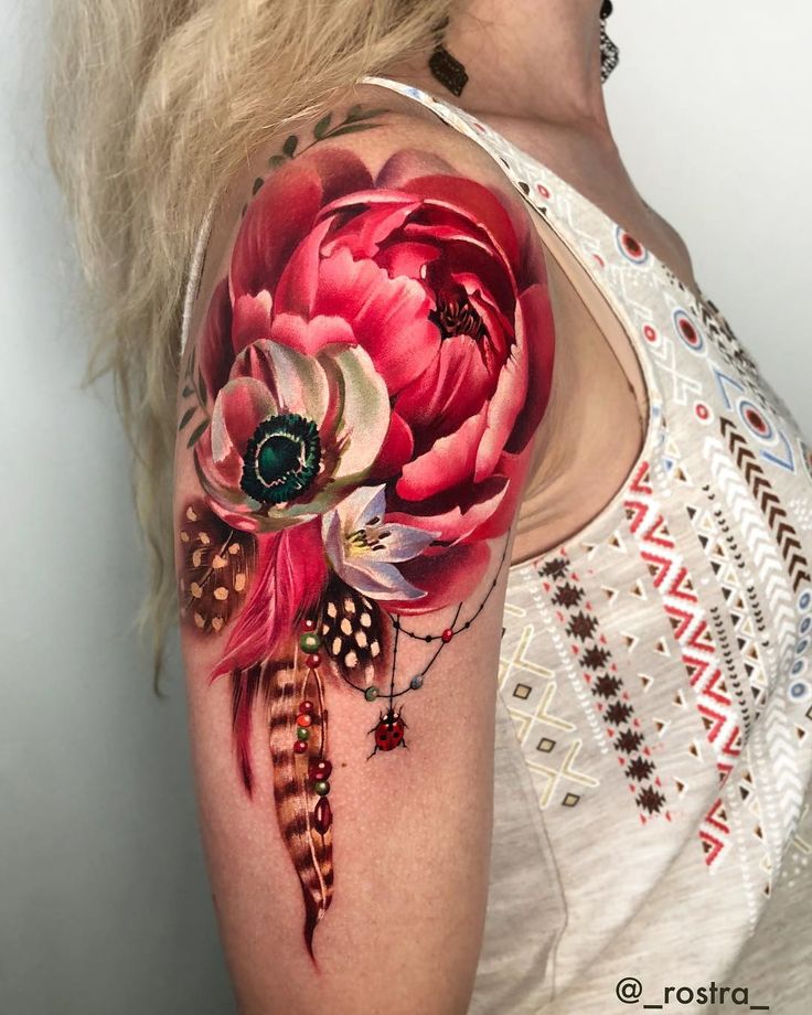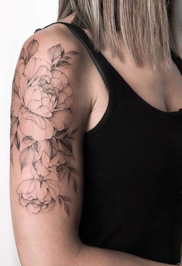13. Большая татуировка пиона на плече