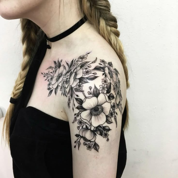 Тату цветов на плече женские